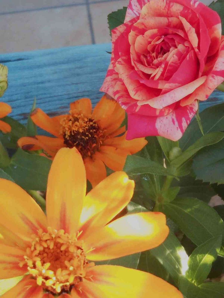 ちょうど薔薇の枝がジニアの方に伸びて、並んで綺麗に咲いた姿です🥰