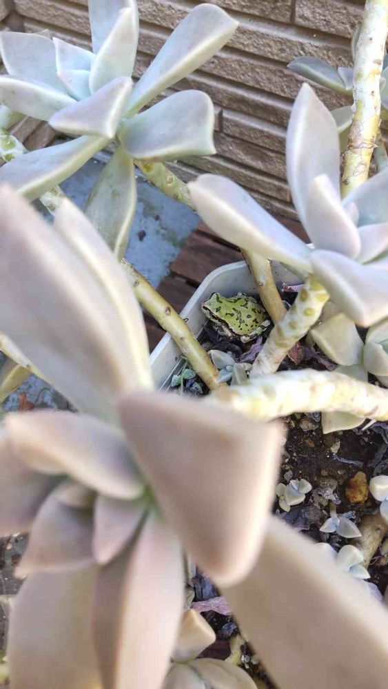 ジェームス君🐸この季節に大変だね😂多肉の下は少しは涼しいのかな⁉️