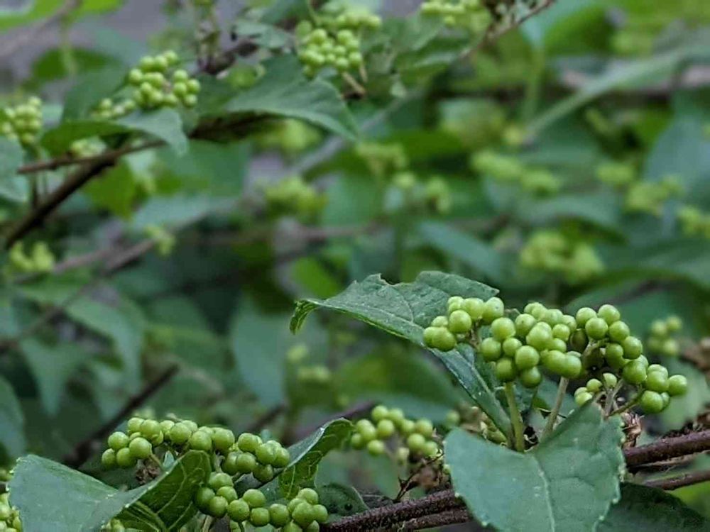 いつの間にやら紫式部のお花がすっかり終わって、ちっちゃいギッシリの実になっています。