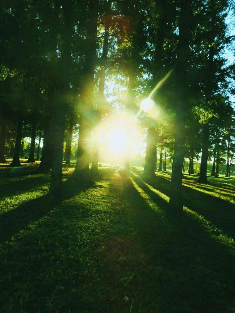 メタセコイアの森に、朝陽が差し込んで来ました。