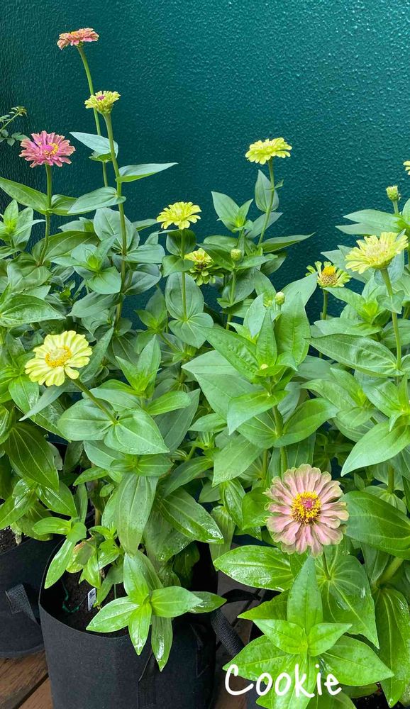 5月27日種まき、7月18日開花スタート、そして今、開花が進んでいます。ジニアクイーンシリーズのライムとレッド💕
