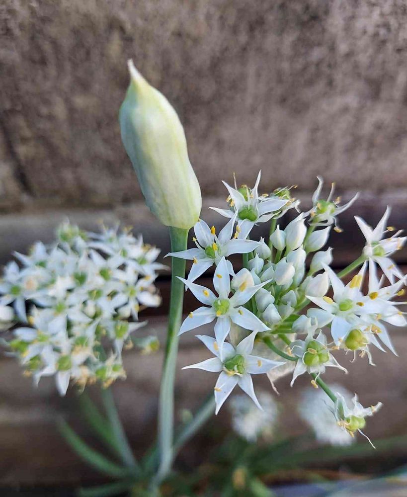 こぼれ種で育ったニラの涼しげなお花が可憐に咲いていて🌟😊🎶膨らんでいる蕾が今にも弾けそう🎉