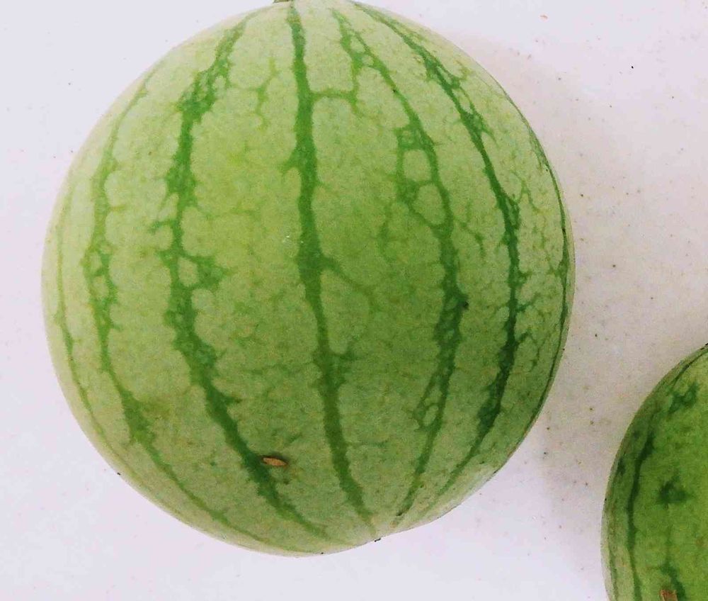 家庭菜園(京都丹波亀岡)で、直径15cmの小玉スイカを収穫しました。