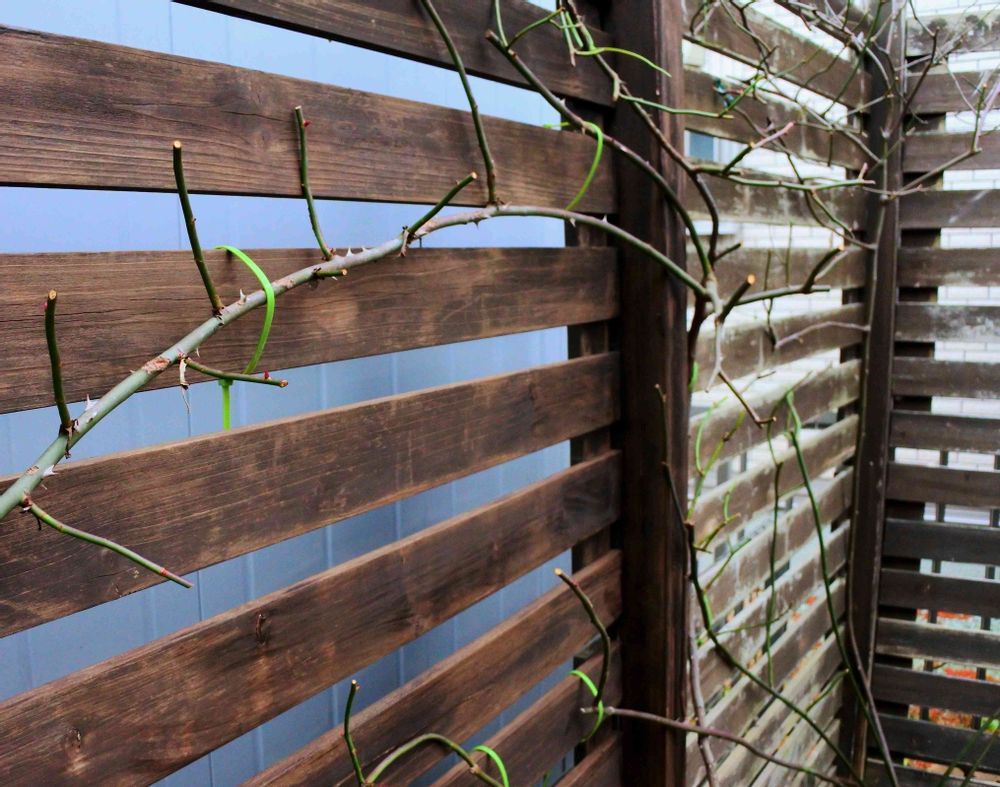 こちらはバラ「伸」を誘引してあるウッドフェンスですが、やっぱりペンキを塗りなおした箇所はそれなりにきれいですね。早く塗り進めたいんですが、でも天気予報を見るとこの先一週間は最高気温に悲しい数字がずらっと並んでるので当分庭作業は無理そうです(+_+)