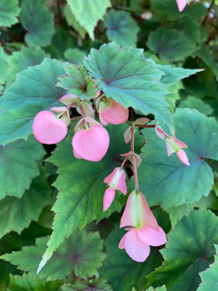 ベゴニアさんね。‼️つぼみがハート💓ね。‼️カワイイのよね、私も、ベランダに、ピンク色で咲いていますヨー。