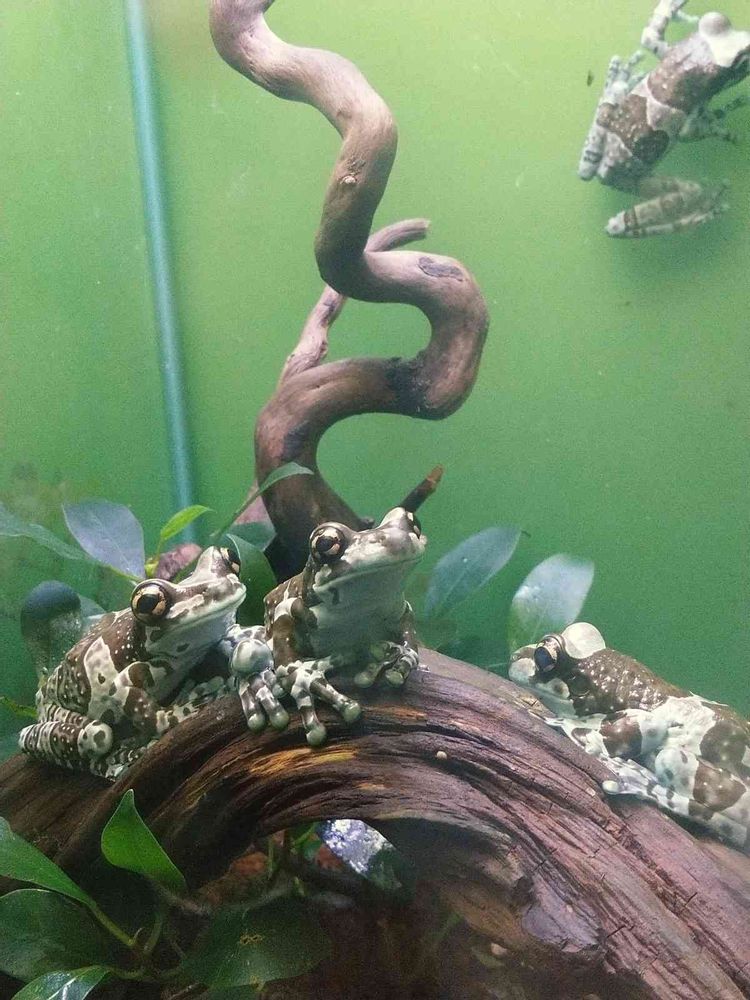 このカエル🐸さん、目が大きくて、全身の模様が芸術的で(水掻きにも模様が!)、後ろ姿(右上の🐸)までカッコいいんです😍