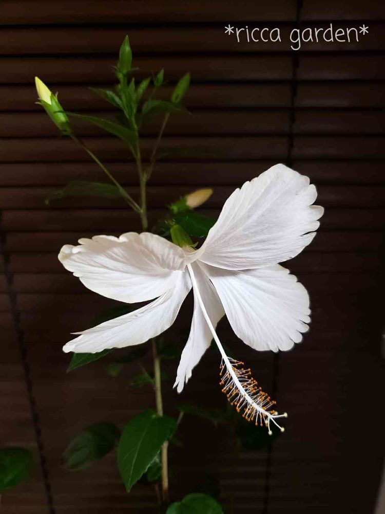 ホワイトバタフライ、咲きました😊GSフォロワー様の育てられていたこの白いハイビスカスに何年も憧れて😊