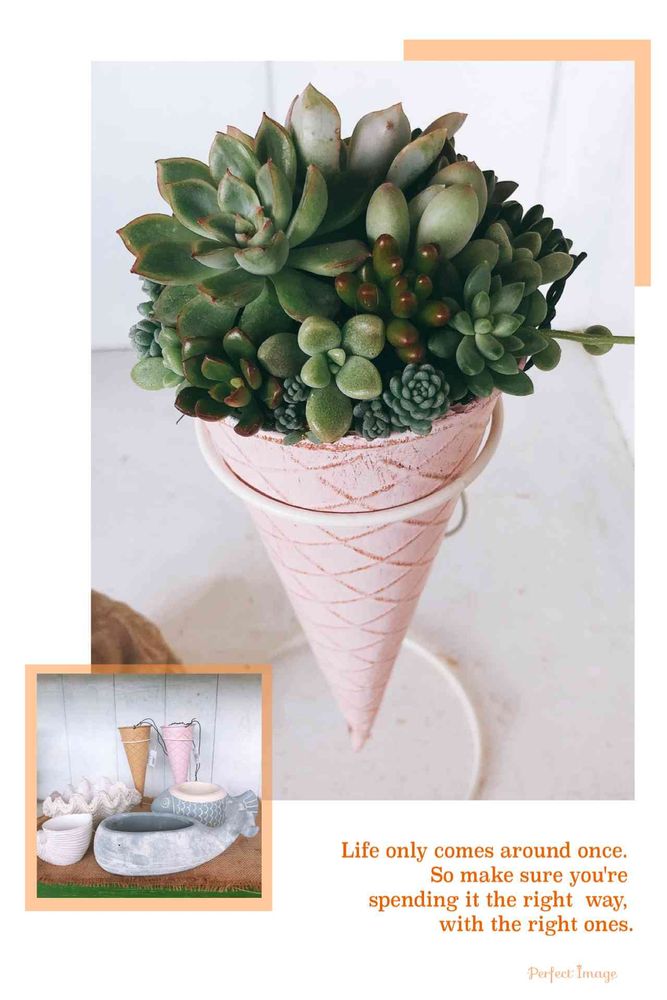 可愛いアイス🍨コーンの鉢にまあるく形のよい、ほんとにアイスみたいな寄せ植えができましたね〜😊👏