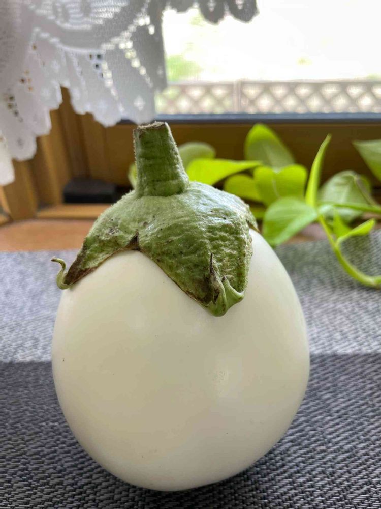 白ナス、ツヤツヤピカピカなんだか可愛くて飾って写真撮影しちゃいました😂