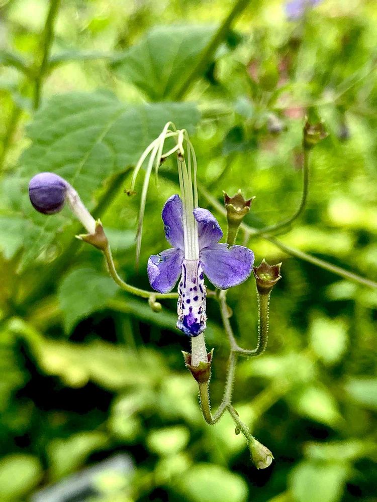 ハナバチなどの花粉を媒介する虫が訪れると花に虫の重みが加わり花序が垂れ下って花が首をもたげるように角度を変え、虫の背中に花粉と柱頭が付いて受粉する仕掛けだそうです。(上手いこと考えるなぁ!)