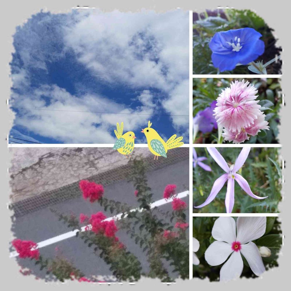空は💙ブルースカイ…に☁☁優勢…☁…😀💜🙆🏻♀️💙🌸💓💚🥀🌿…↖️…