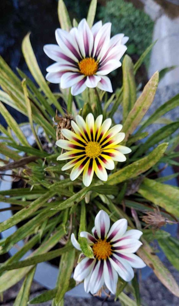 三連のガザニア、見事。三つ揃うと迫力出ます!