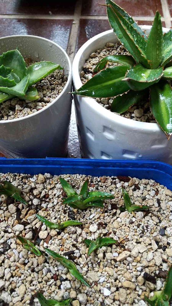 higeさんから頂いた、アガベさん達を、早速鉢植えにしました!