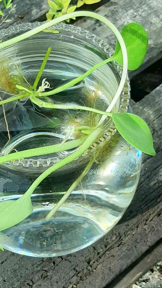 前回投稿の植物を水から引き上げて金魚鉢に入れました。