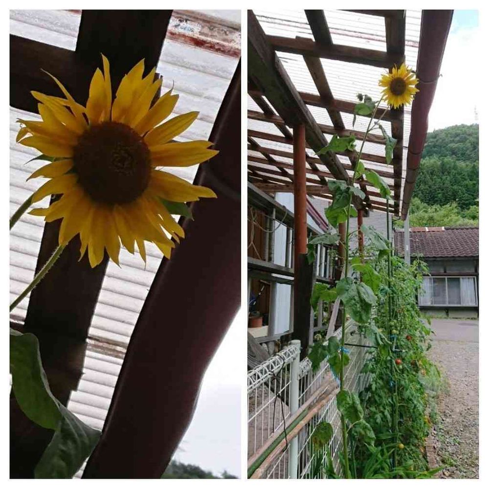 軒下まで届きそうな所で ゆらゆら🌻咲いてます🌻
