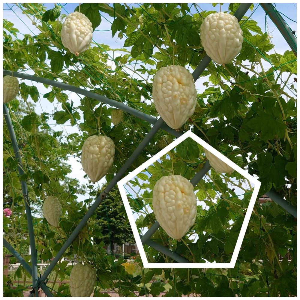 白いゴ―ヤは青いゴ―ヤみたいに長くならないのね😉