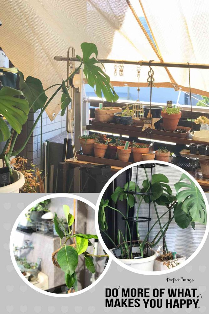 遮光85%☀太陽好きなモンステラやゴムノキを夏の間はベランダ管理😚株が太くなればいいなぁ😋