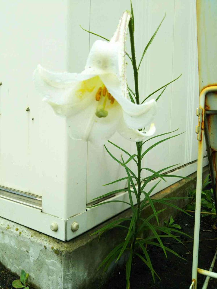 職場の物置横に生えて来た高砂百合が立派な花を咲かせました✨