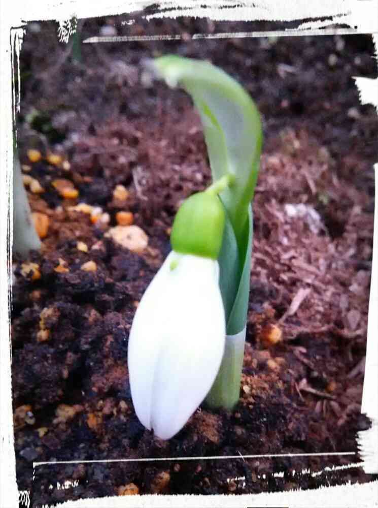 スノードロップが白い頭を出してきました🎵
