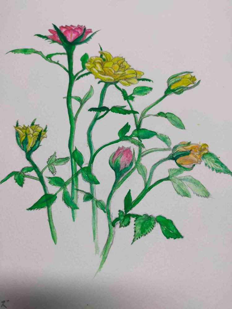 このミニチュアローズの鉢は本人が購入して描きあげました〜😄