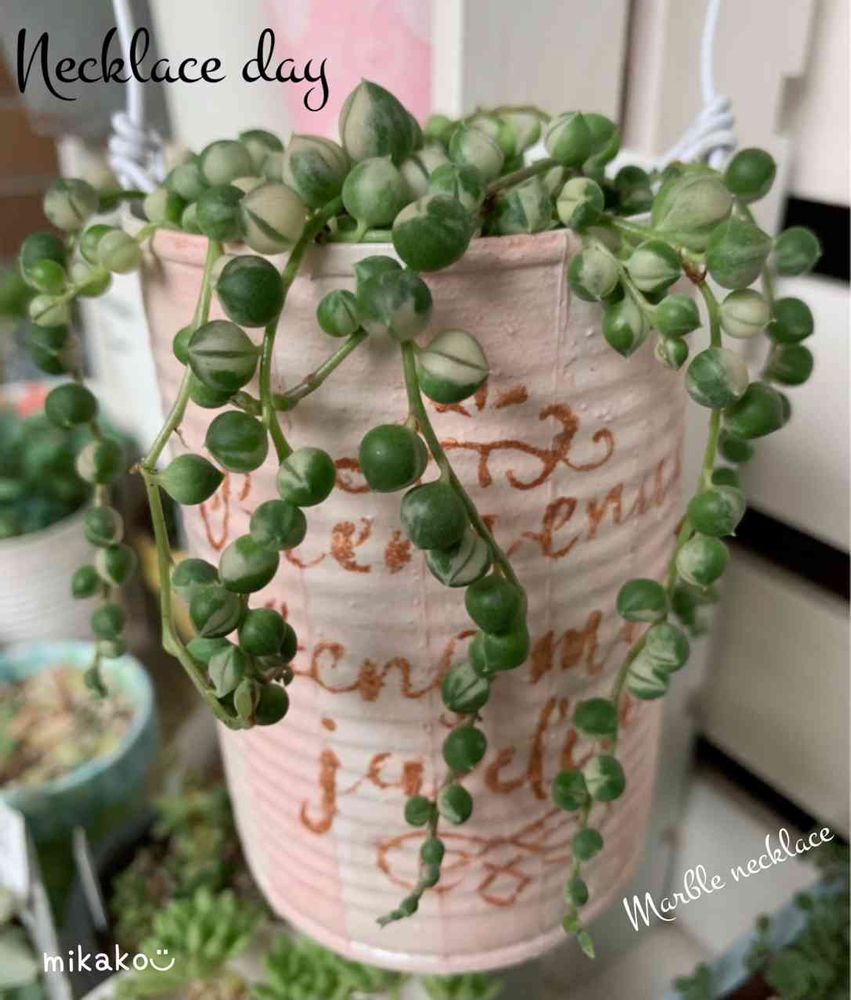 バルコニー/ベランダ,多肉中毒,グリーンネックレス、グリネ・マーブル、ミカヅキネックレス、ピーチネックレスの投稿画像