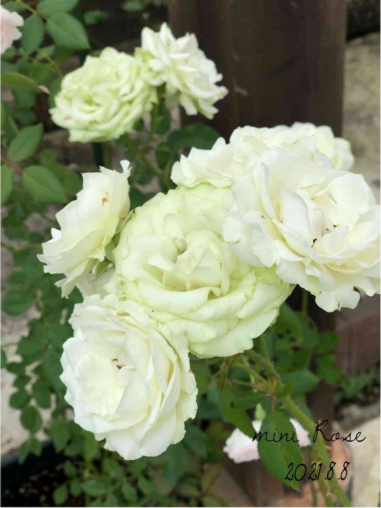 ミニ薔薇にしては1mの直立の立派な樹形で私の眼中に無かったこの薔薇さんは😅クリーム色から咲き進むと🤍白→💚緑色に褐色して房咲きの可愛い薔薇さんと今頃になって😳驚いてます😂nyacoさんが可愛いと言っただけあって目の付け所とやっぱりセンスがあるのね!と思った瞬間でした🎶😆