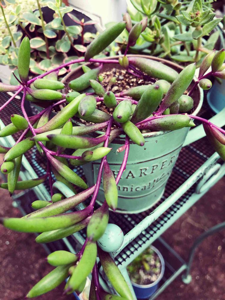 99円で購入したルビーネックレスをセリアの缶に植えました。
