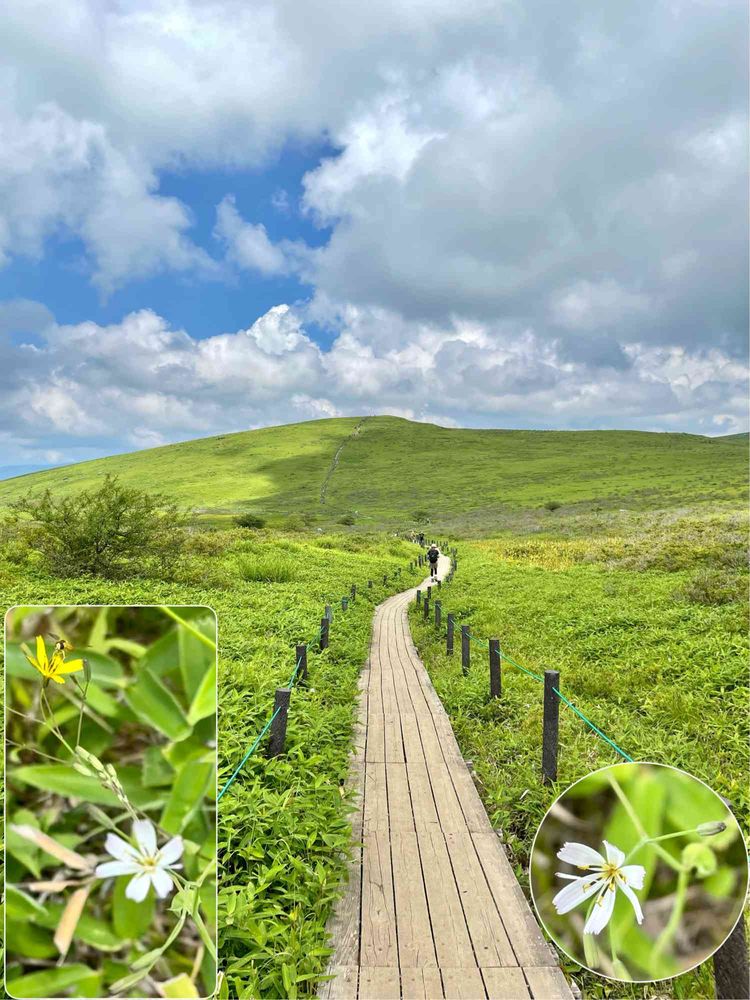 車山から車山湿原を通り蝶々深山へ向かう木道の脇に白と黄のニガナが並んでいました😊