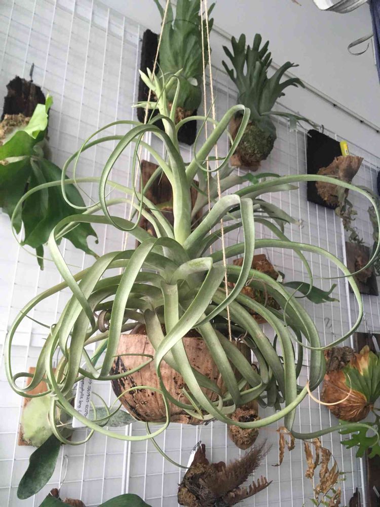 開花準備中で、麻のハンギングロープが狭くなってきたので、ヤシの器に入れてハンギングし直しました。これでいつでも子株吹いても良くなったね