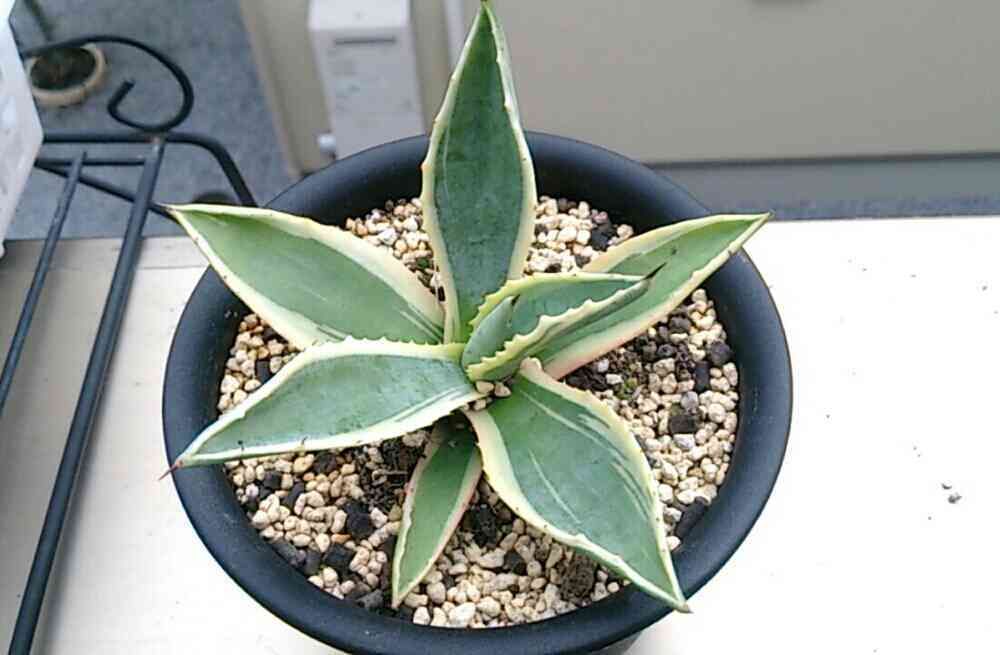 バルコニー/ベランダ,アガベアメリカーナ錦,多肉植物とサボテンの投稿画像