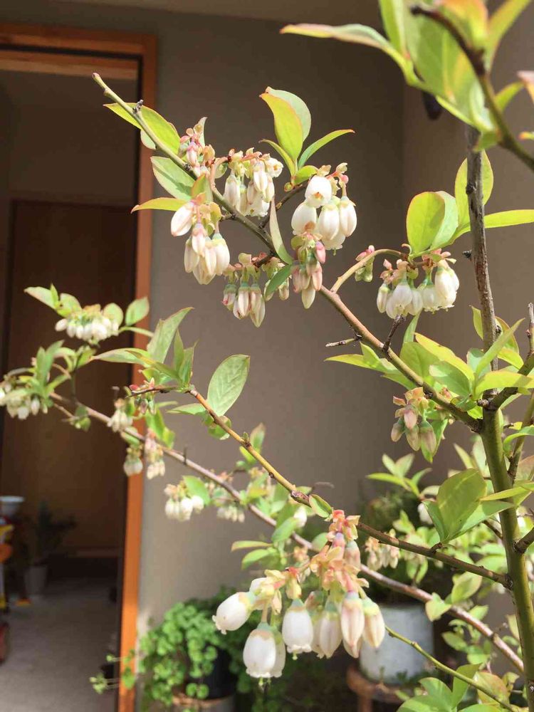 玄関のブルーベリーの花が満開です♡ぷっくりしててかわいい😊
