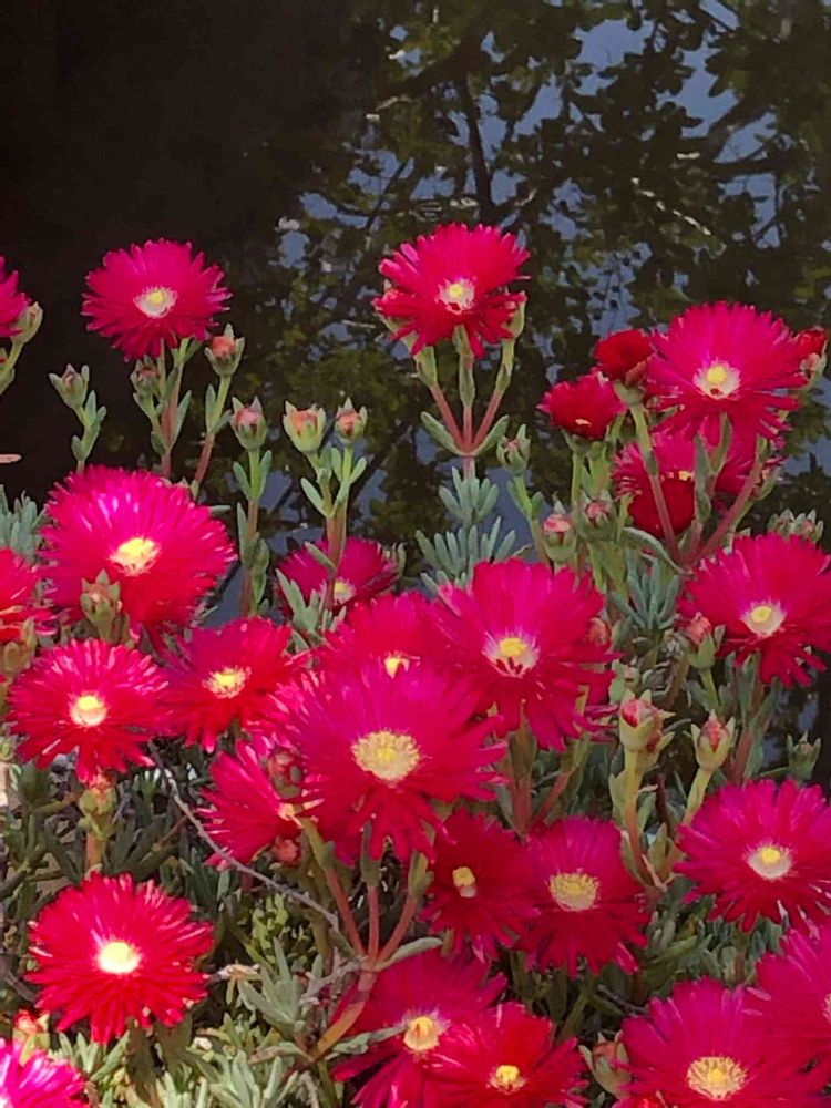 ピンクのマツバギクも可愛いですが、これだけ真っ赤に団体様で咲くと迫力がありますね❣️