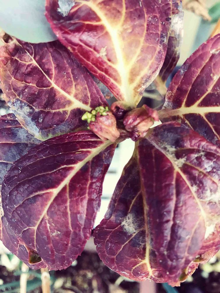 しっかり紅葉もして蕾をつけるなんてーどこで勘違いしたの〜?!