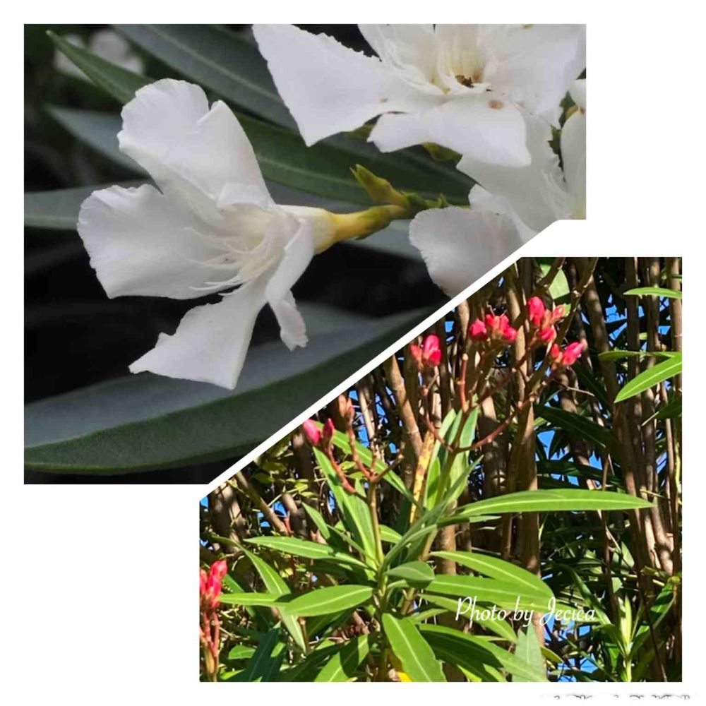 お出かけ先,真っ白い夾竹桃の花,葉の様子が竹みたいの投稿画像