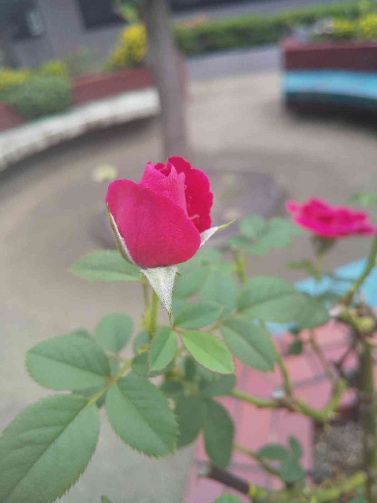 我がマンション中庭花壇に咲いてた今朝のバラ…で…🌹🌿😀!