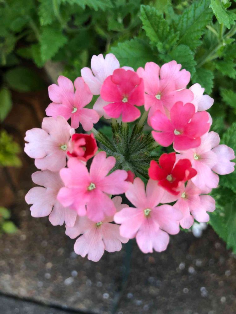 散歩の途中で何箇所かで咲いているバーベナですが、ピンク色のグラデーションが可愛い種類です💕