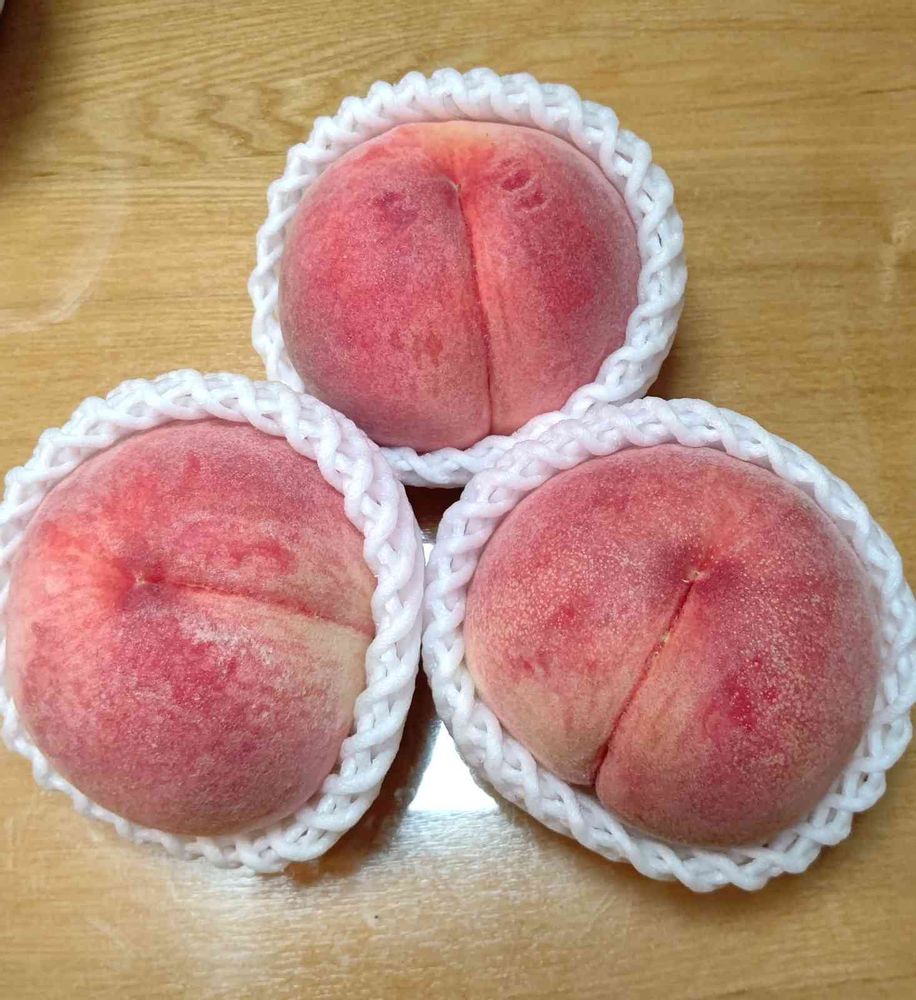 さん桃🍑美味しそう皮がス〰️っと剥ける位がいいかな😋ご飯要りません桃三個食べたい😂