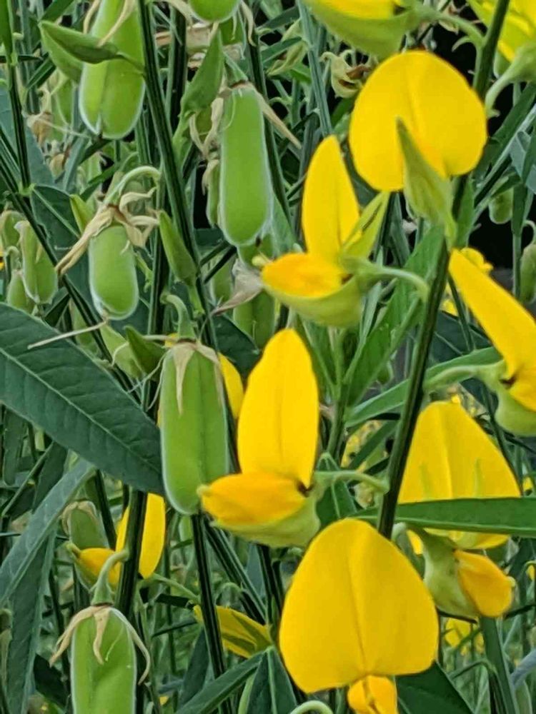 今頃畑で見かけるこの花 背丈ぐらいあり豆みたいな鞘が出来てます。