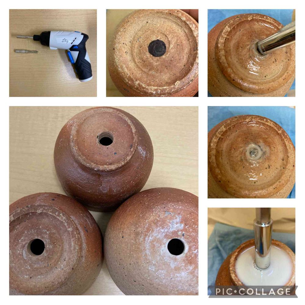 皆さんのみどりのまとめを参考にさせていただき、陶器の底穴開けに挑戦してみました。