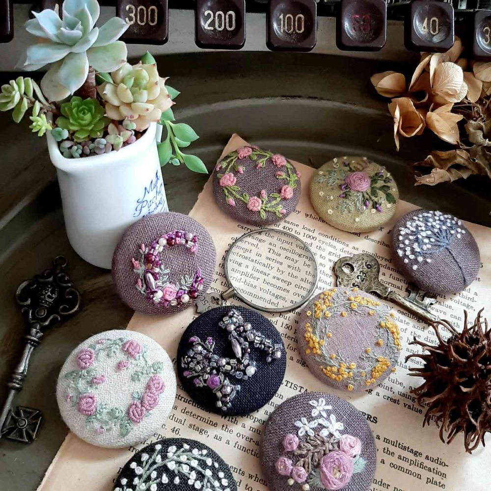 刺繍ブローチ、アパレルが出しているものを買って持っていますが、当たり前ですが美しさが段違いです。