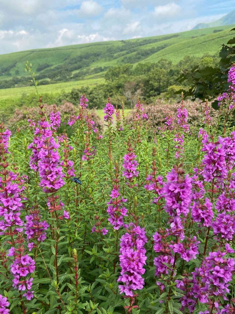 きれいなミソハギですね。群生すると存在感ありますね。お盆のお供えする習わしですが、早く咲いてしまいます。青空い鉢とは珍しいですね❗阿蘇山の固有種でしょうか⁉️