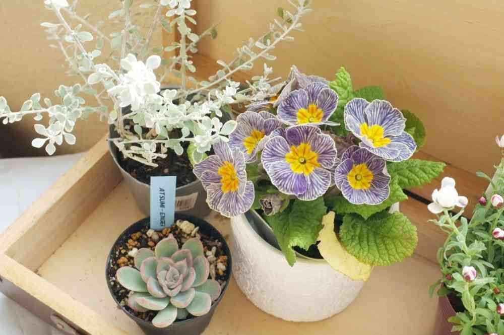 お花は去年見かけて気になっていたものです。名前はプリムラ・ジュリアン アンティークマリアージュ?ですかね?