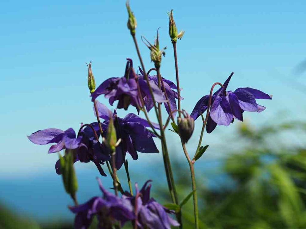 屈斜路湖を見下ろす高見で美しく咲いていたセイヨウオダマキ。