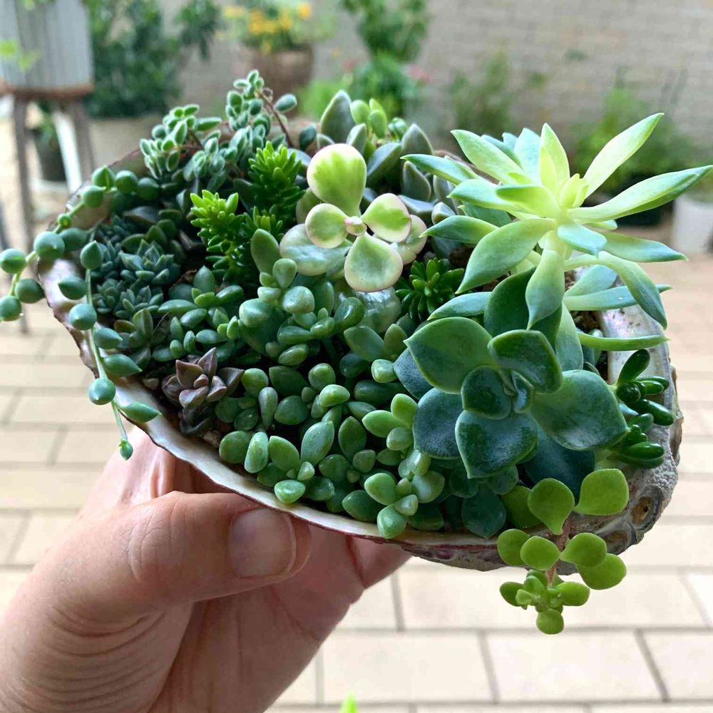 アワビの殻に多肉ちゃんを寄せました♫