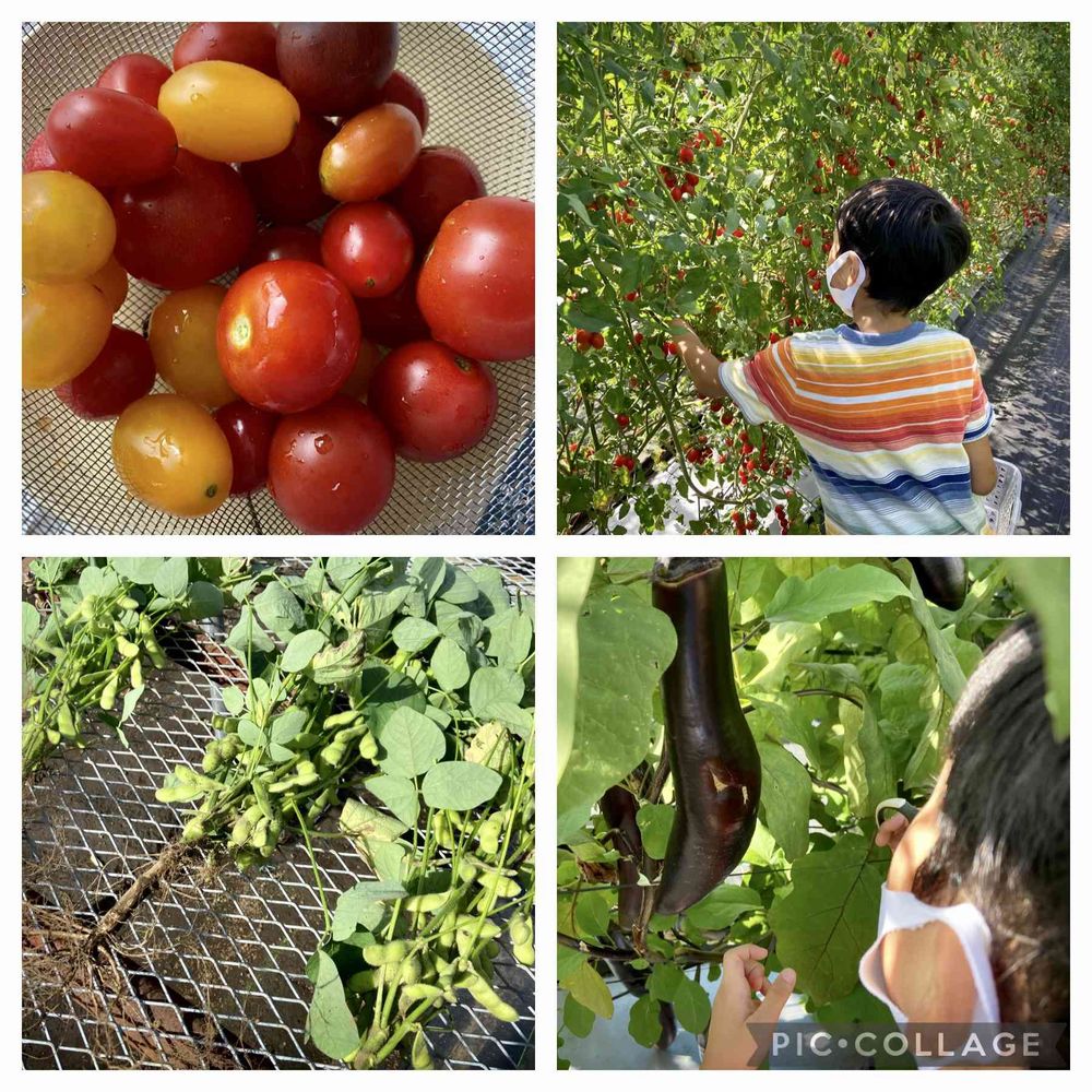 野菜の収穫体験へ行ってきました🌱いろんなトマトがあって食べ比べしながら収穫できました🤤ナスは育ちすぎからか種が多くて皮が硬かったです🍆枝豆もイマイチ、、