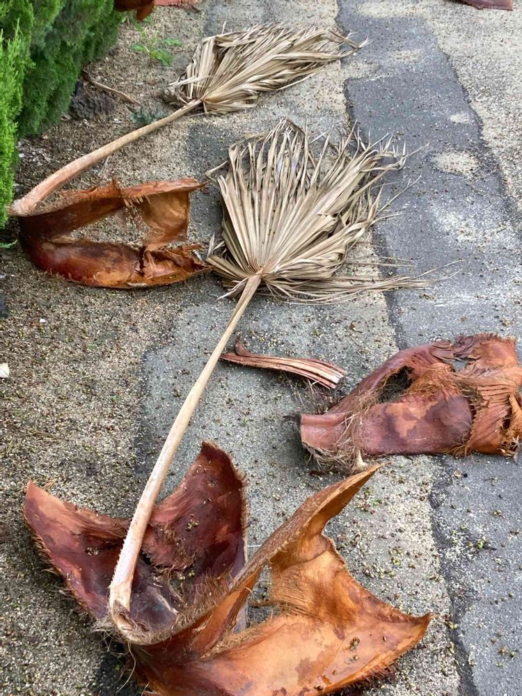 ワシントンヤシの皮と葉が落ちてました。
