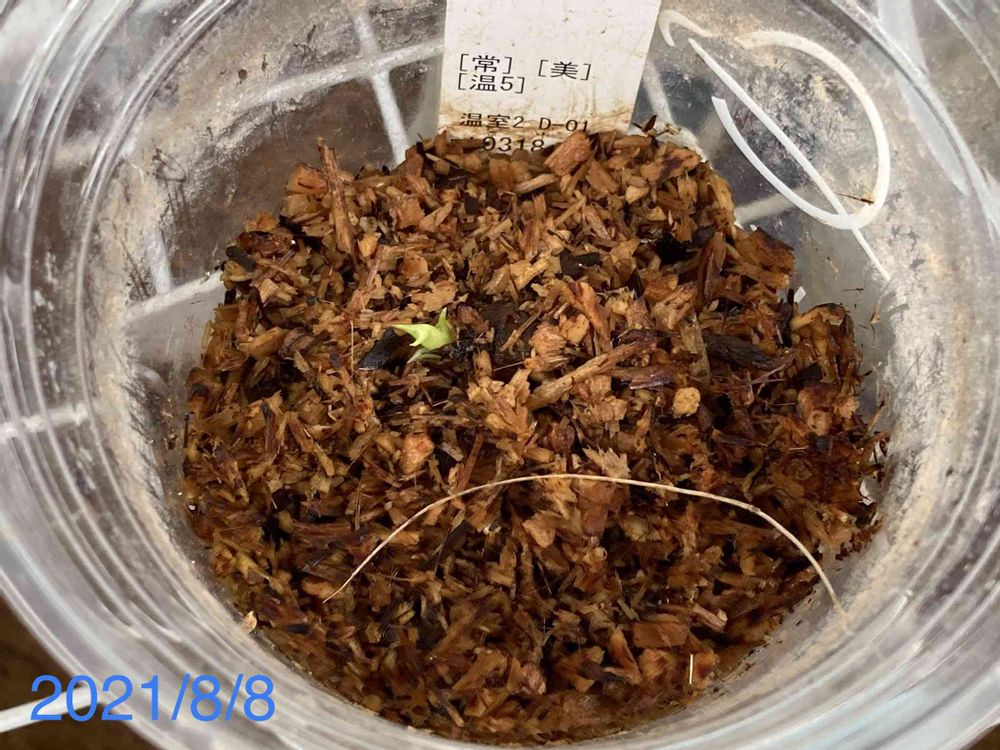 アロカシアの球根?小芋?を埋めたら芽が出てきていたのに、取り込むのを忘れてしまった。軽いから飛ばされていそう…。