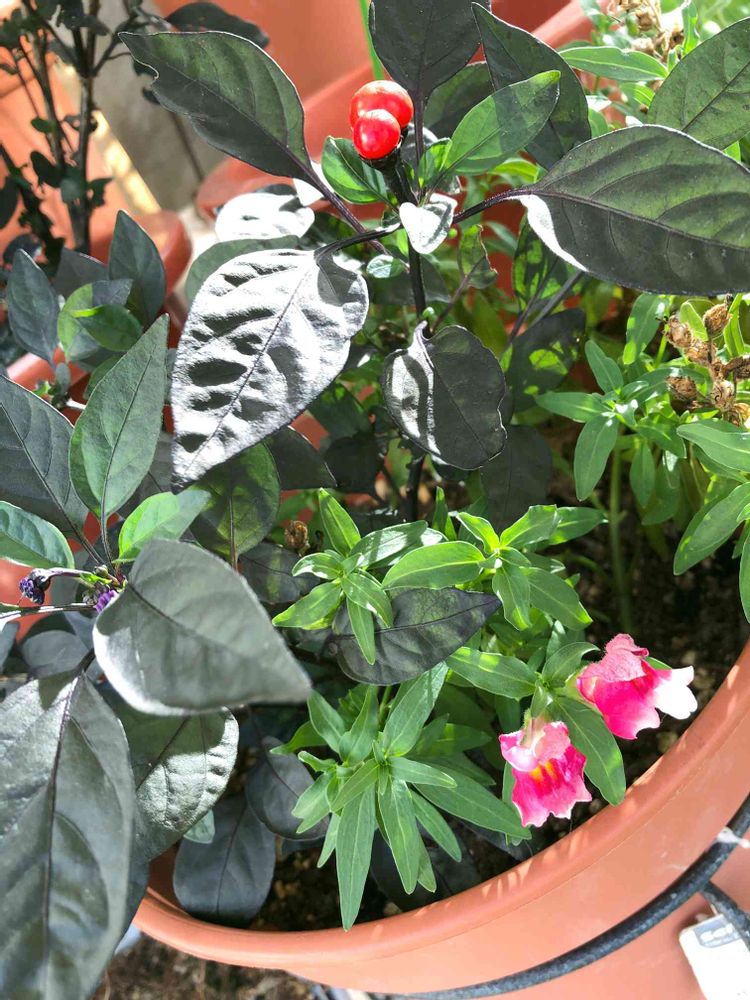 バルコニー/ベランダ,キンギョソウ(金魚草),観賞用唐辛子ブラックパールの投稿画像