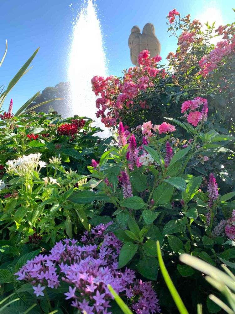 キバナ千日紅かわいかった💞ガウラのお花達が包んで✨そしてやはり噴水⛲️が見える山下公園の夏の花々がとても楽しく観れました😄