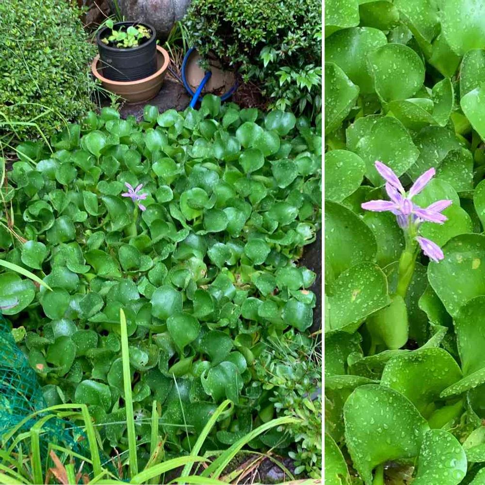 完全に覆われた池のど真ん中に花が咲き始めました。